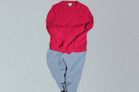 大人女性におすすめのメンズニットを2つ紹介します。まずは、ユニクロのウォッシャブルミラノリブクルーネックセーター。