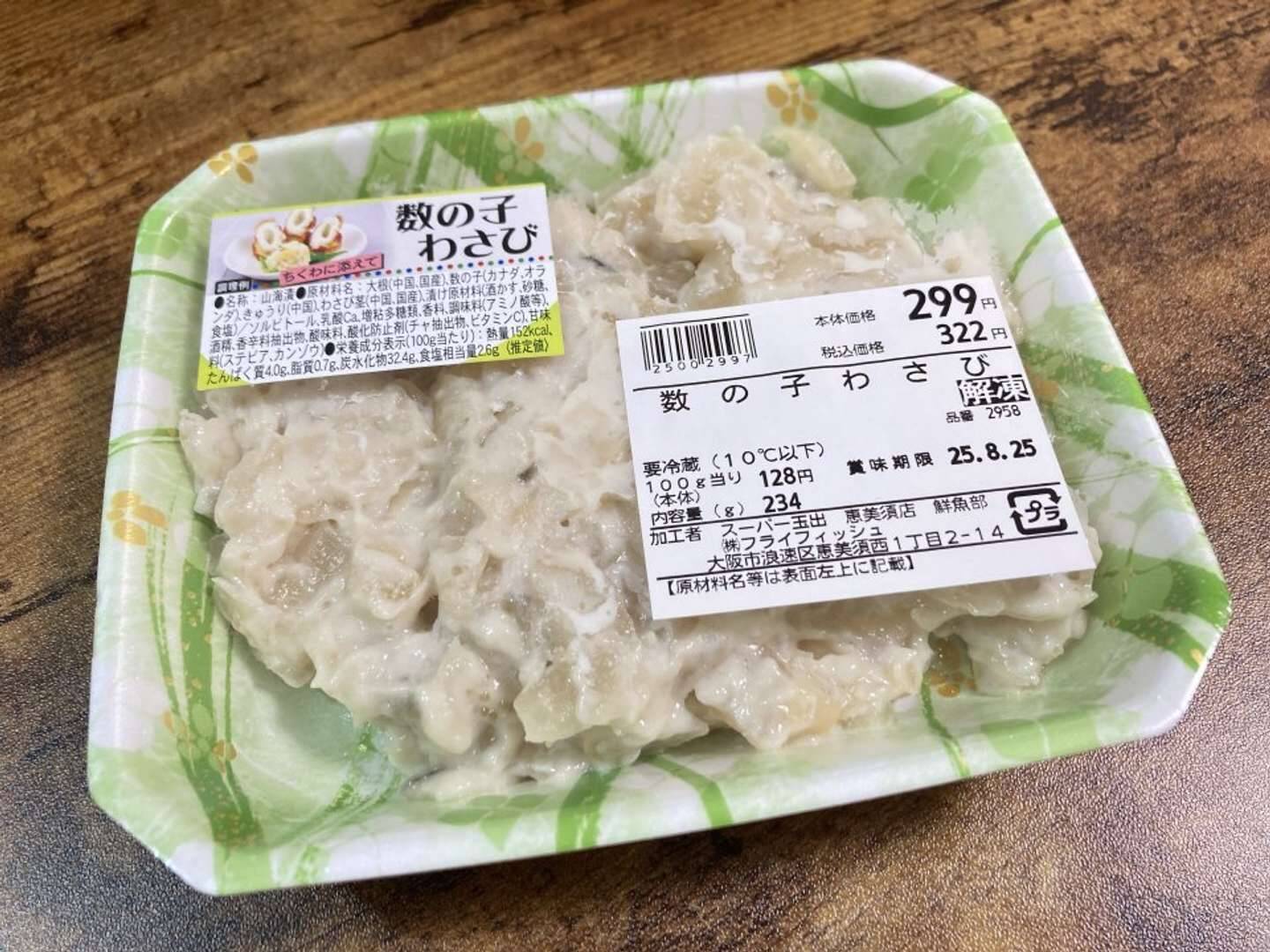 ということで今回はスーパー玉出の「数の子わさび」を紹介しました。