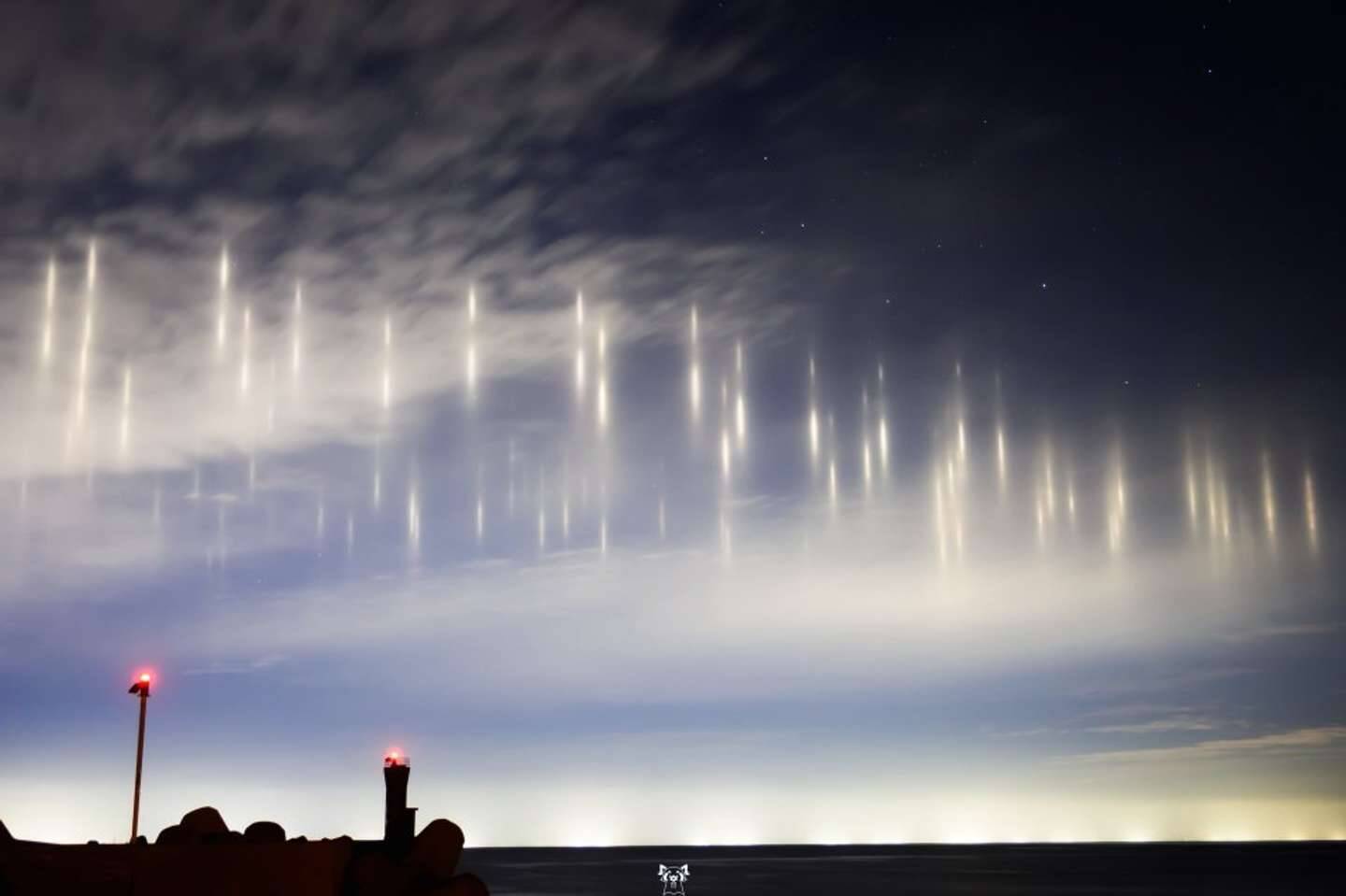 「大規模な光柱現象をこれ以降1枚も撮れていないってくらい珍しい大気光学現象『漁火光柱』」
