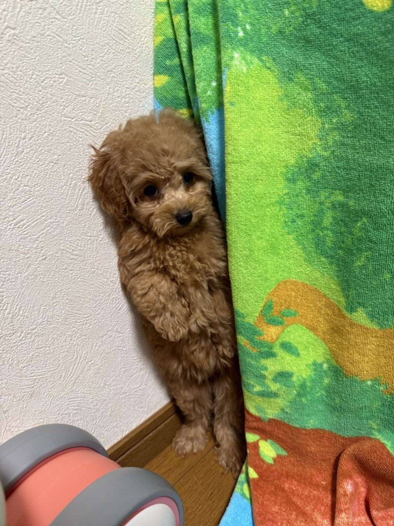 添えられていたのは、茶色いもこフワのちっちゃな子犬ちゃんの写真。