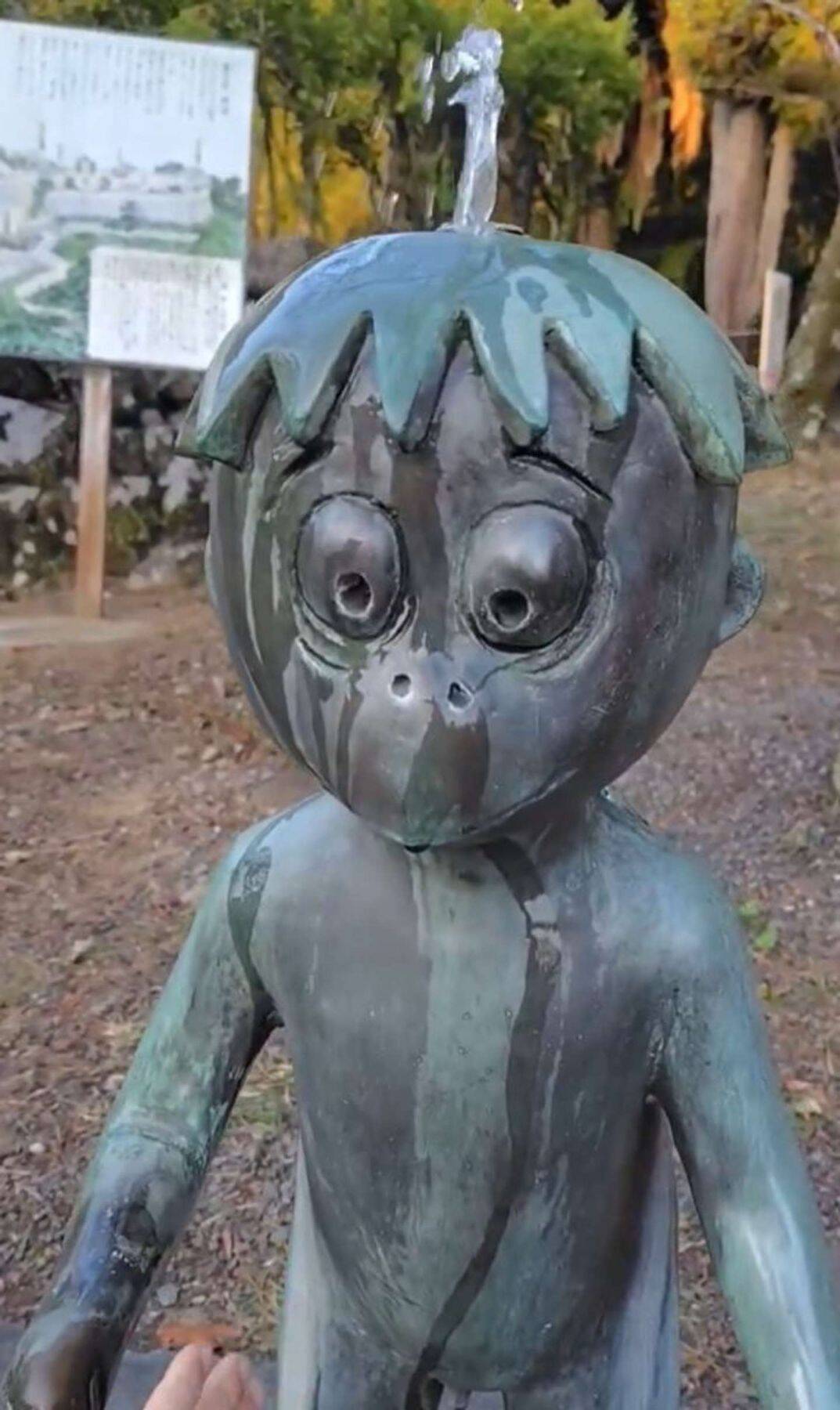 握手することで水を噴き出す珍妙なカッパ像に、X上ではこんな声が寄せられている。
