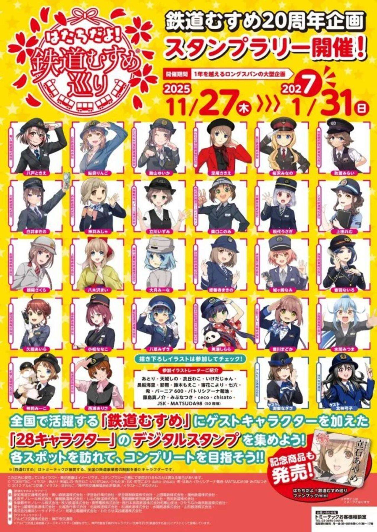 そんなコンテンツを展開するタカラトミーの子会社「トミーテック」は、20周年を記念した企画として、11月27日~2027年1月31日の期間、デジタル方式スタンプラリー「はたちだよ!鉄道むすめ巡り」を開催中だ。