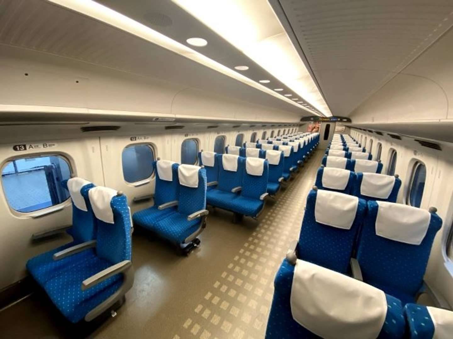 新幹線はとても混んでいて、通路を歩いて空いてる座席を探しました。