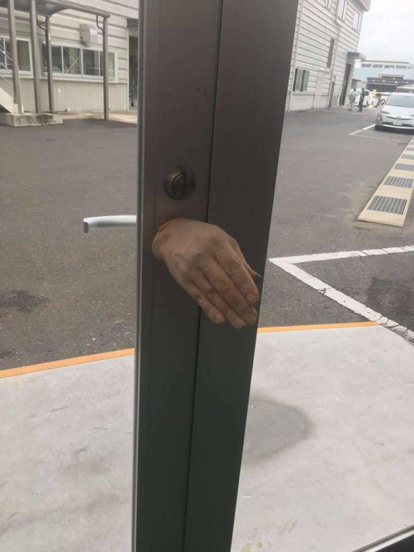 池田さんによると、注目を集めた〝手〟はもちろん、本物の人間のものではない。数年前に池田さんが同僚数名と制作し、部署に入るドアに設置していたものだという(事務所移動のため現在は非設置)。