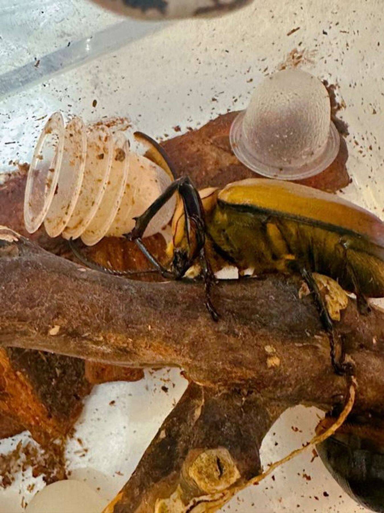 さとぴさんによると、食べ終えたゼリーの容器を重ねていたのは、ゴロファポルテリというカブトムシだ。