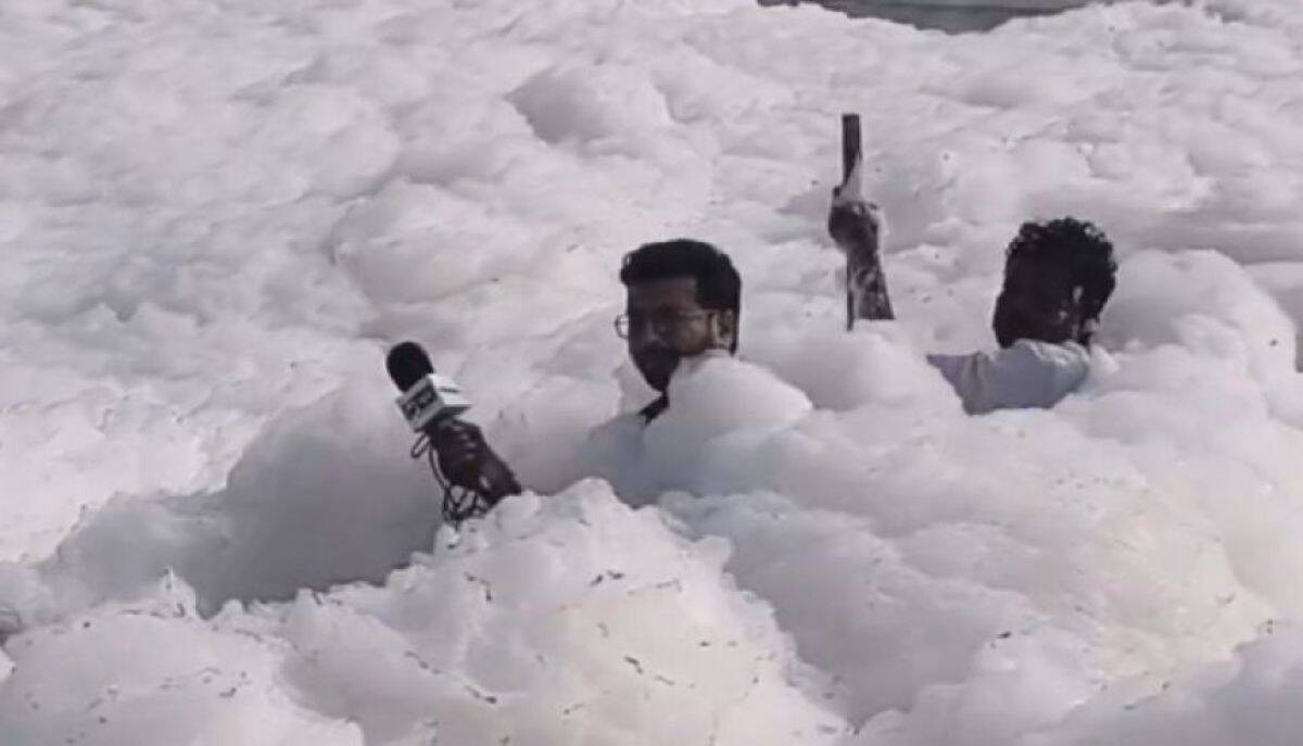 雨季が終わり、気温が上がってくると、川の水に大量に含まれている汚染物質由来の界面活性剤などが泡を形成し始める。