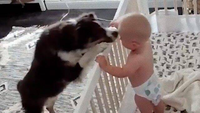 しかしこちらもお宅のカメラに映っていたのはほのぼの、赤ちゃんをあやす愛犬の姿だったのである。ゆりかごの中の赤ちゃんが泣きだすと、さっと身を起こしてあやしに行くよ。
