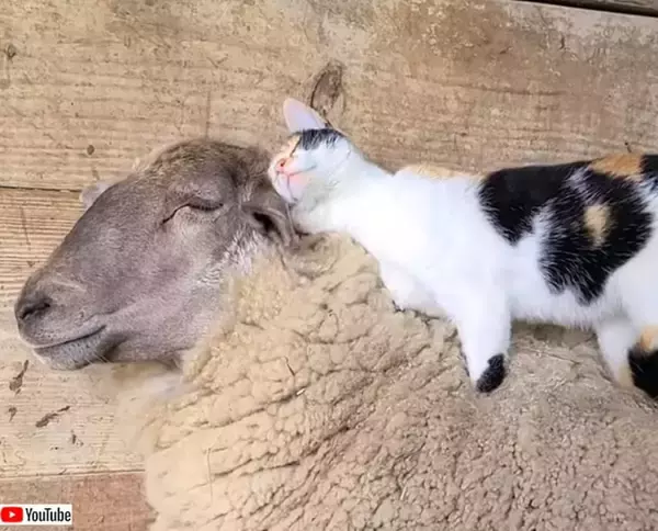 Barn Cat Massages Waffles the Sheep