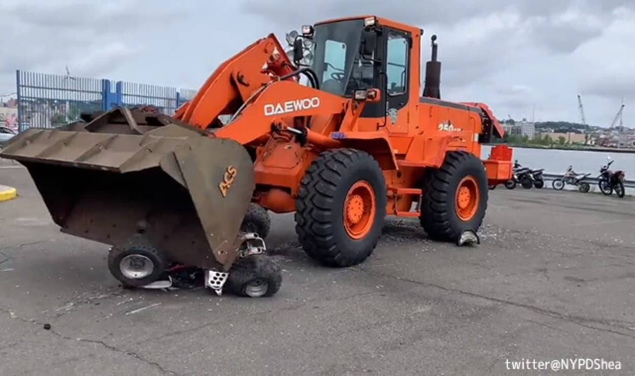 シア長官の投稿コメントによると、ニューヨーク市警(NYPD)は今年4月以降、1203台もの違法バイクやバギーを押収したという。Isn’t this what every NYer wants to do when they see or hear an ATV coming down the street?