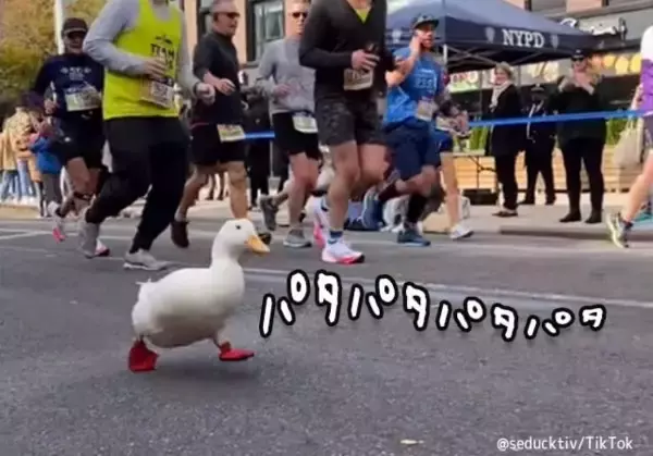 Duck Runs the NYC Marathon (wrinkle the duck)マラソン大会にアヒルが参戦 11月7日に開催されたニューヨークシティーマラソンは今年で50回目の開催となる。大勢の出場者にまじり、この大会に参戦したのはTicTokで人気のアヒル、リンクルさんだ。