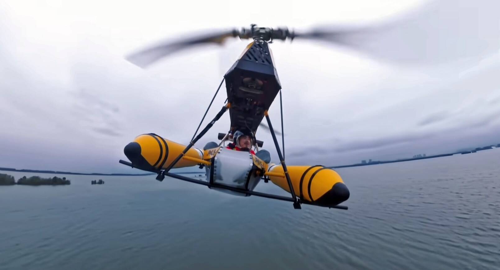 電動が多い中、燃料式な点は、長時間の飛行と燃料効率を加味してのことだろう。なんというか、小型ヘリコプターとドローンと水上機のいいとこどりした新ジャンルの乗り物風だ。