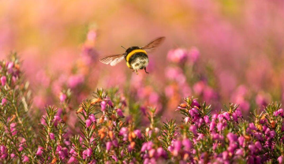マルハナバチは甘いミツを見つけると、元気いっぱいに飛び回る。その姿を見た仲間たちまでも、つられるように動きが軽くなり、一緒に飛び回りはじめる。