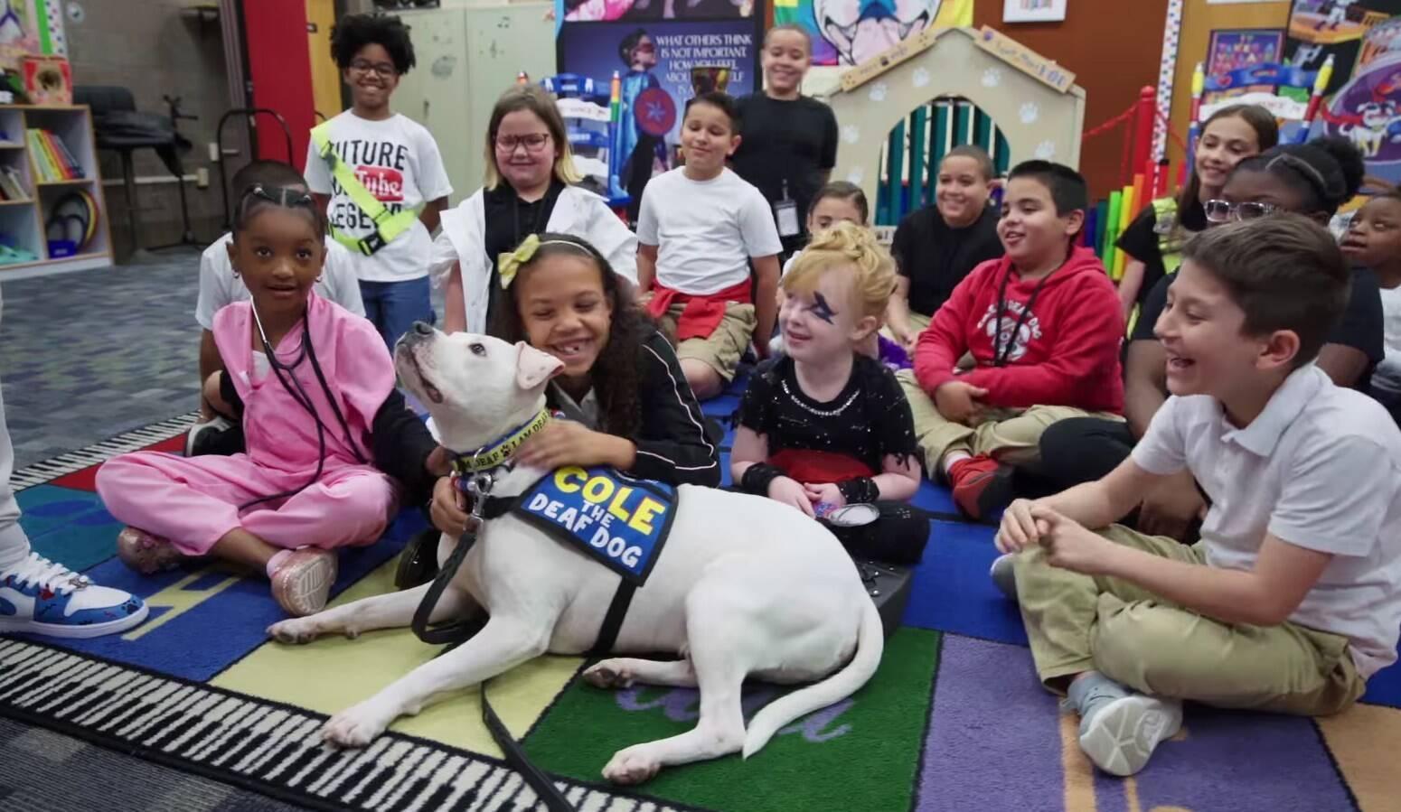 それからコールは、同州ヴィンランド市のドクター・ウィリアム・メニーズ小学校に勤務するハンナさんと共に活動を開始。手話に反応するセラピードッグとして、子どもたちの心を支える存在に。