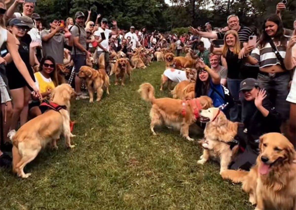 この日、世界新記録を樹立しようと飼い主たちが愛犬を連れて続々と集まり、公園は瞬く間にゴールデンレトリバーで埋め尽くされたのだ。