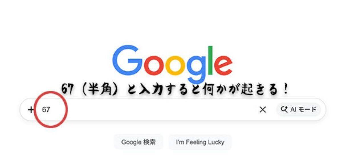 Googleの検索窓に「67」という2つの半角数字を打ち込むと、びっくりすることが起きる。