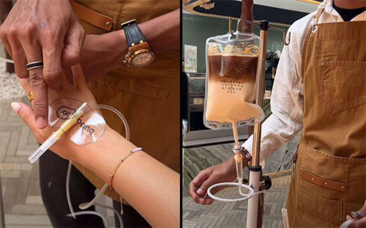 インドネシアのバリ島にあるカフェ「Buba Tea Bali」では、病院で使われる点滴そっくりの容器を使って、カフェラテや抹茶ラテを提供している。