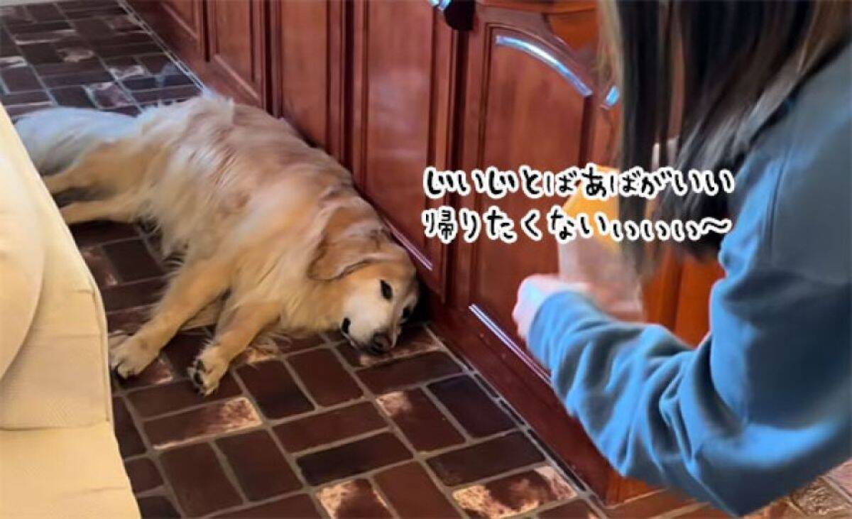 ところが、どうしても帰りたくないブリーズは台所に座り込み、ストライキを起こした。飼い主の言うことを聞いてくれず、その場から動こうとしない。