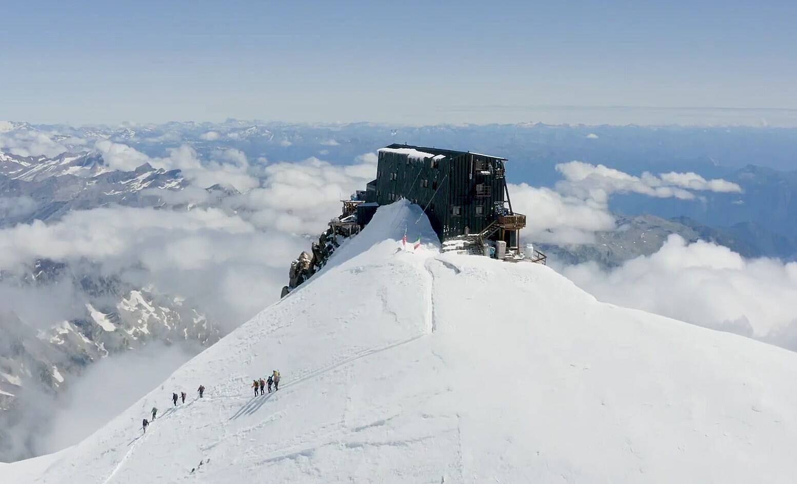 登山家に人気の「マルゲリータ小屋」は、スイスとイタリアの国境、アルプス山脈に次ぐ高さを誇るモンテ・ローザ山塊にあり、そう簡単には着けないことから“究極の隠れ家”ともいわれる。