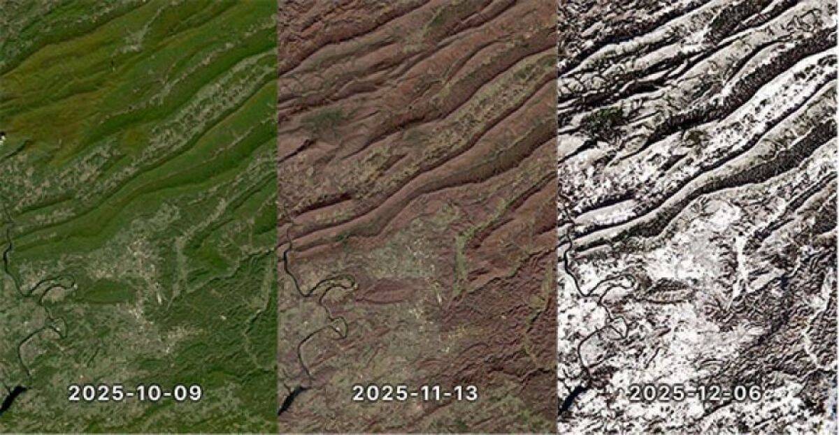NASAが公開したタイムラプス動画には、バージニア州南西部の風景が驚くべきスピードで塗り替えられていく様子が収められている。