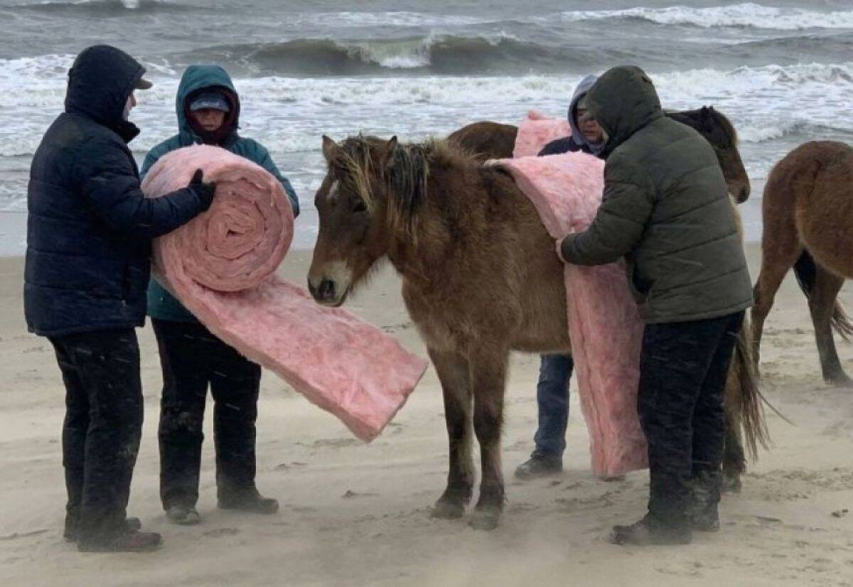 本日、非営利団体「Outer Banks People」は、野生馬たちが低温や降雪に備えられるよう支援を行いました。