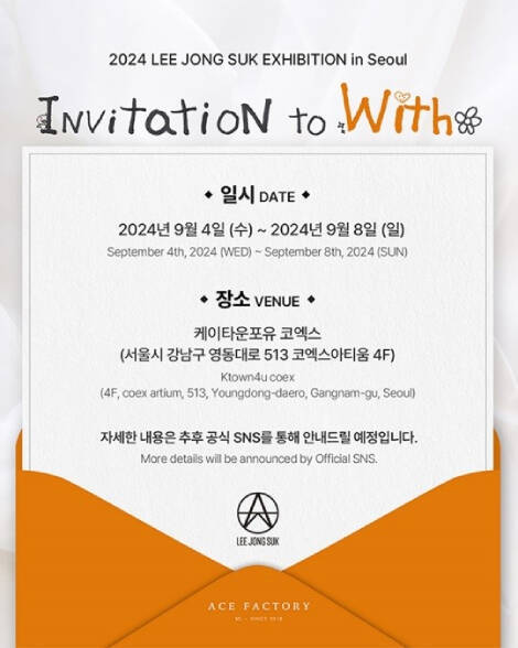 イ・ジョンソクはデビュー14周年を迎え、ファンと共に歩んできた時間を振り返る『2024 LEE JONG SUK EXIHIBITION in Seoul - Invitation to With』(以下、Invitation to With)を開催する。