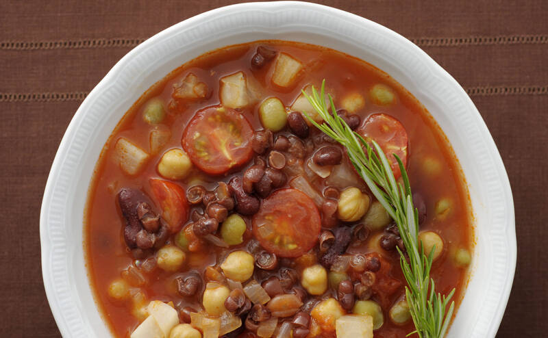自然な甘みのトマトスープ。豆、トマト、唐辛子、ローズマリーの効果で、食べるたびに脂肪が燃える!