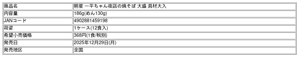 「明星 一平ちゃん夜店の焼そば 大盛 具材大入」 を2025年12月29日(月) に新発売