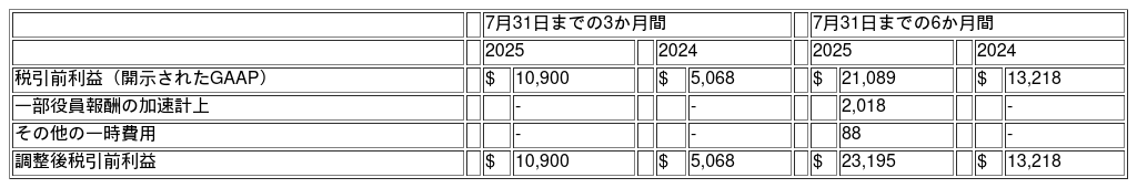 サグル社長兼CEOは以下のコメントも寄せています。「2025年10月31日時点で、年度累計売上高は2024年度通期の売上高とほぼ同水準です。普通株主に帰属する当年度累計純利益は1,210万ドルとなり、2024年度の約900万ドルに比べて310万ドル(34.4%)増加しました。2025年度はあと1四半期を残す段階で累計純利益が2024年度通期を上回っており、業務面・財務面での改善が継続していることを示しています。