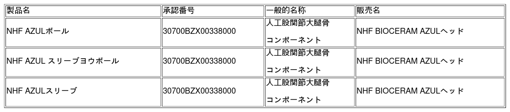 新商品 販売名 : NHF BIOCERAM AZULヘッド