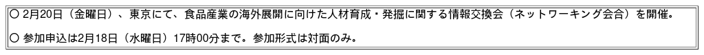 【タイトル】食品産業の海外展開に関するネットワーキング会合