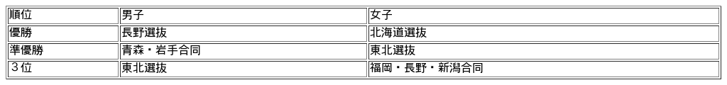 【男子】北海道選抜、東北選抜、長野選抜、広島・北海道・千葉合同、青森・岩手合同
