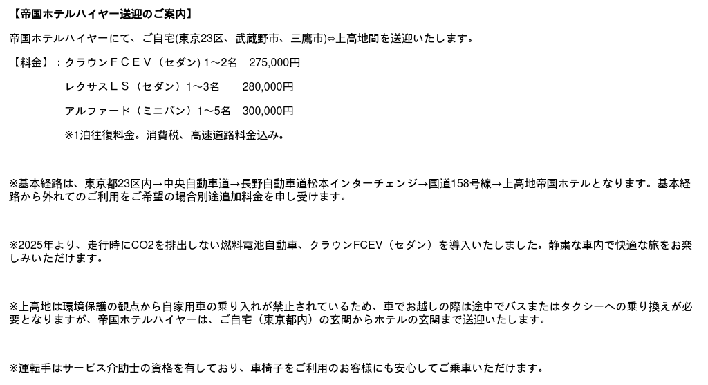 □2026年度 上高地帝国ホテル 営業概要