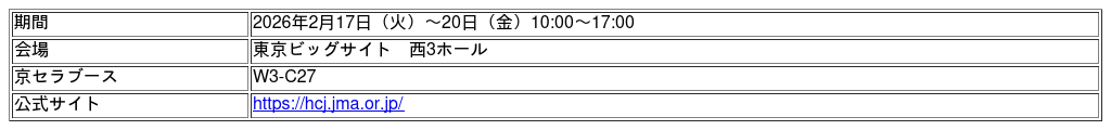 京セラ株式会社は、2026年2月17日(火)から20日(金)まで東京ビッグサイト(東京都江東区)で開催される「第54回 国際ホテル・レストランショー」に出展します。