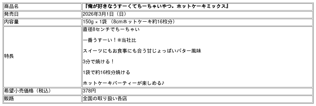 『俺が好きなうすーくてちーちゃいやつ。 ホットケーキミックス』商品概要