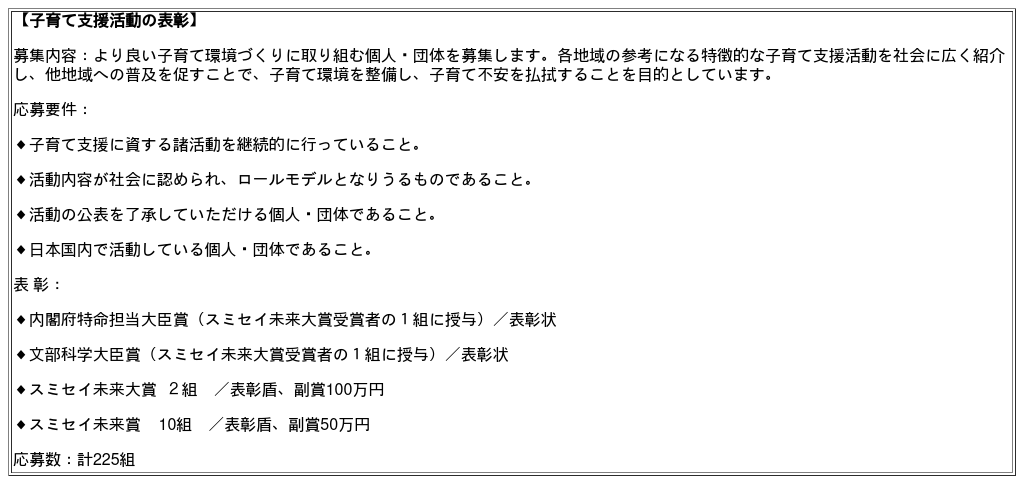 文部科学省・こども家庭庁後援 住友生命子育て支援事業 第19回「未来を強くする子育てプロジェクト」受賞者決定