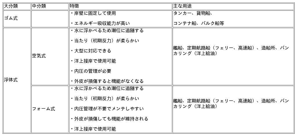 防舷材の分類