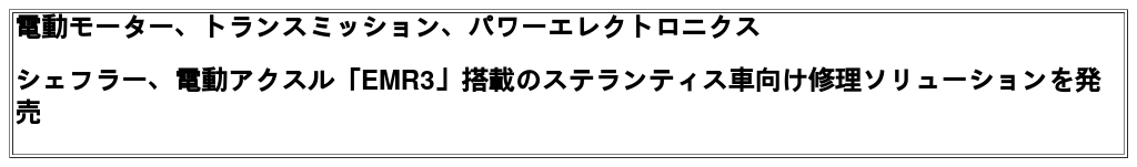 【画像:https://kyodonewsprwire.jp/img/202603065220-O1-nAp4EzwC】 アクスル全体の外観:シェフラーは、電動モーター、ギアボックス、パワーエレクトロニクスの3つのサブシステムそれぞれに対応する修理ソリューションを提供しています。