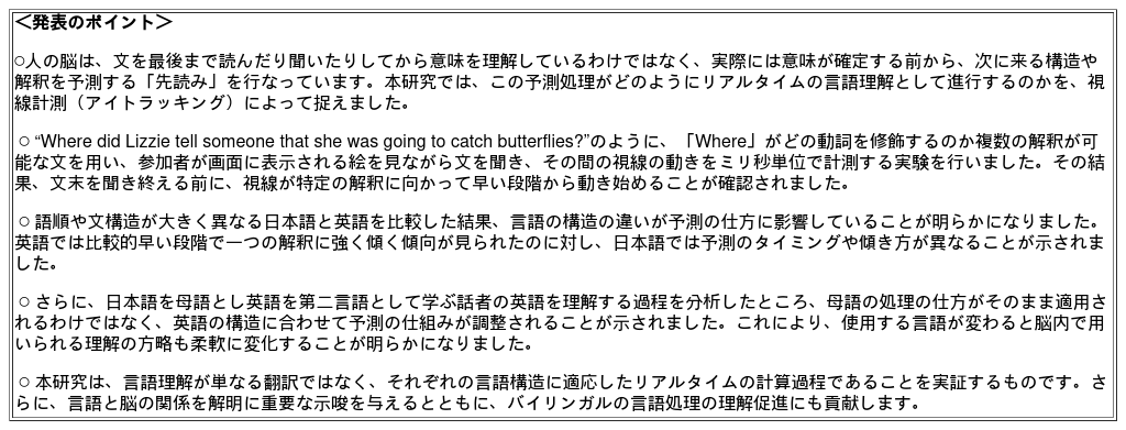 ―日本語と英語で異なる脳の予測メカニズムを視線計測で解明―