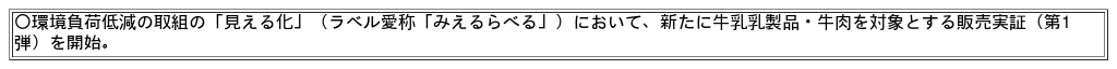 今般、令和8年1月に開催した同検討会において、同算定シートを活用した「販売実証」の実施に了承が得られたことから、牛乳乳製品及び牛肉に「実証用みえるらべる」を表示し販売を開始することとなりました。