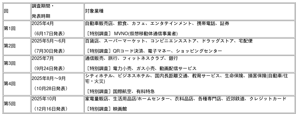 2025年度JCSI(日本版顧客満足度指数)調査年間発表