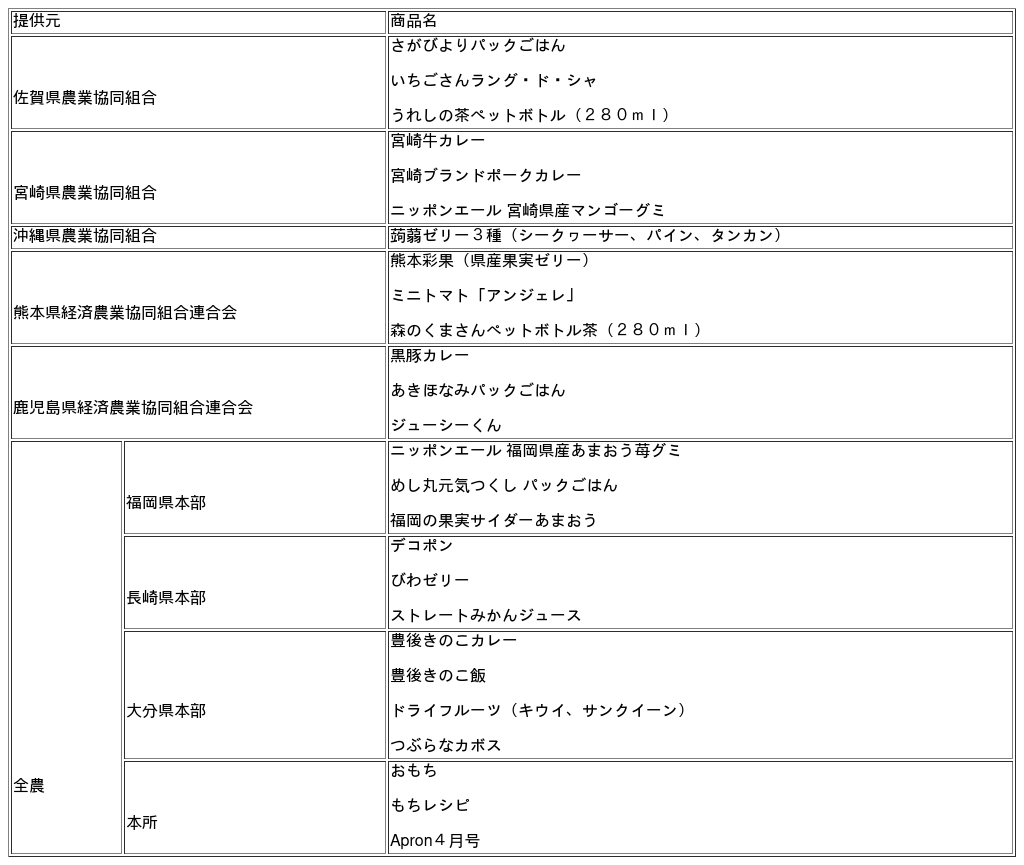 開催地の大分県をはじめとした九州地区各県の食材を贈呈