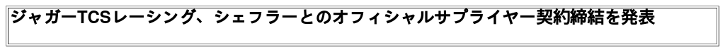 ジャガーTCSレーシングは、シェフラーと複数年にわたるオフィシャルサプライヤー契約を締結しました。