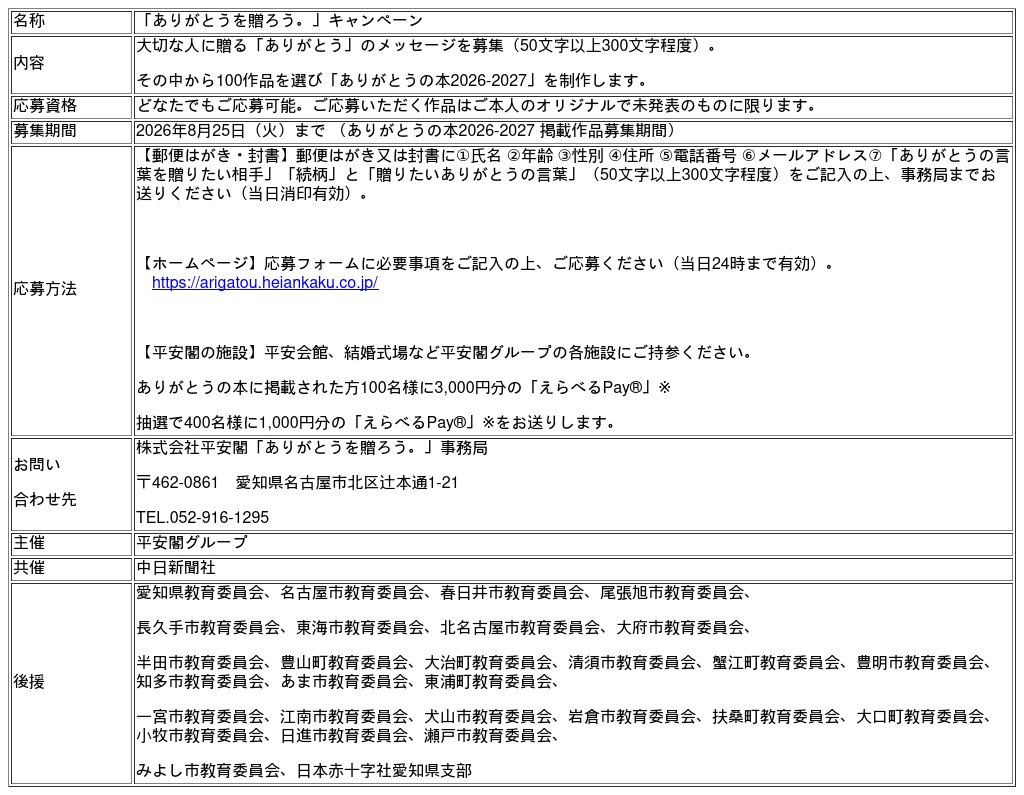 株式会社平安閣「ありがとうを贈ろう。」事務局