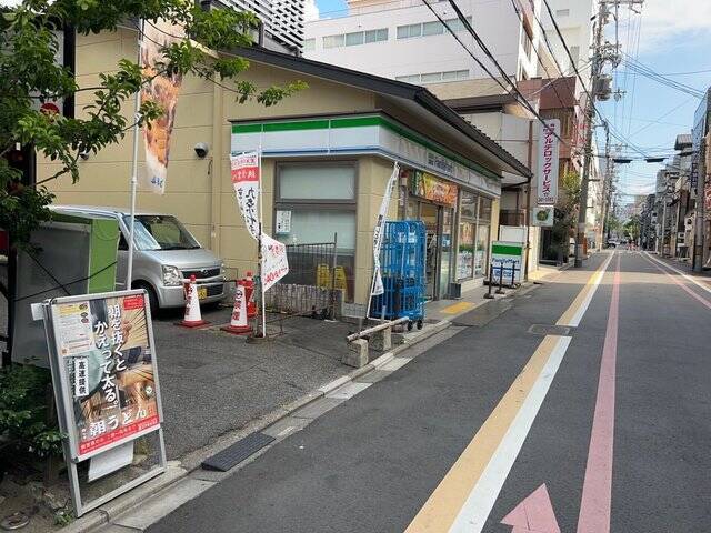 中京区四条烏丸の大丸百貨店東洞院前の細い路地。この日は祇園祭後祭の山鉾を朝の涼しいうちに見学しようとやってきて、朝食も外ですませようと。
