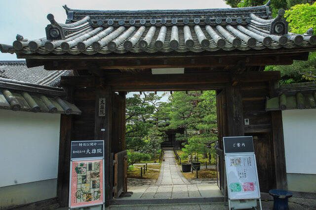 妙心寺大雄院は妙心寺の塔頭寺院です。1603年(慶長8年)尾張藩家老であった石河光忠が、その父の菩提寺として慧南玄譲を開祖に迎えて、建立されました。こちらの山門と本堂、庫裡は、京都府指定文化財に指定されています。