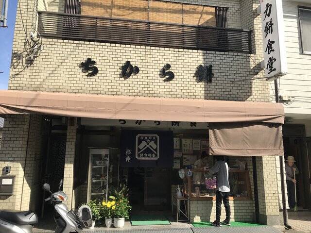 『力餅食堂』の始まりは、明治22年豊岡市で饅頭(まんじゅう)店として創業。その後、明治28年には「勝利饅頭」と改名し京都六角に開店。『力餅食堂』の店名は、創業者・池口力造翁の「力」と商品である「餅」からとったもの。