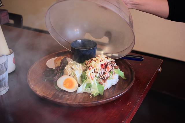 11:00~14:30で提供されるランチメニューでは、パスタやライス、サンドイッチのセットが味わえます。中でも「燻製ライスセット」は燻製したての状態で届き、蓋を開ける時のワクワク感が楽しめます。タコライス・ポテトサラダ・スープ・デザートがついていて、使われる食材は燻製されたものばかり。燻製好きにはたまりません。燻製全種盛りやアルコール、スイーツなど、食事以外のメニューもありますよ。
