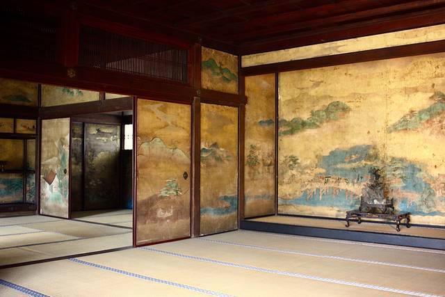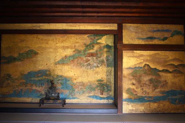 書院や本堂など今ある建物は、江戸時代中・後期のもの。宸殿や、国の重要文化財に指定されている書院は、元禄10年御所から譲り受けたもので、明正天皇が使っていた居間だそう。障壁画は日光に当たると色褪せるため、日が当たらないよう雨戸を締め守られていますが、今回は天皇陛下御即位を記念して特別公開されます。普段は非公開なので必見です!