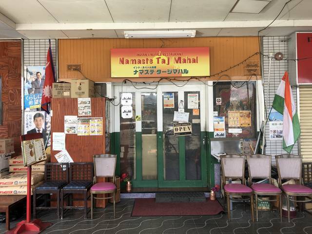 サンプラザの一角にあるインドダイニング「ナマステタージマハル」やや古めかしくもノスタルジックな雰囲気を醸し出すファサード。