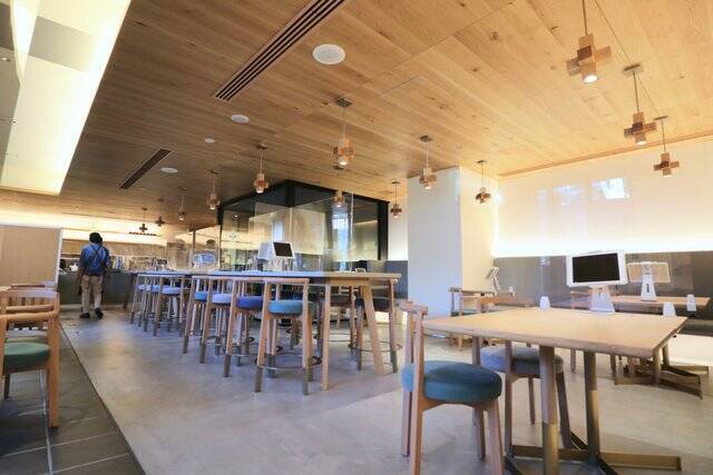 自然光も採り入れた広々としたカフェスペース。
